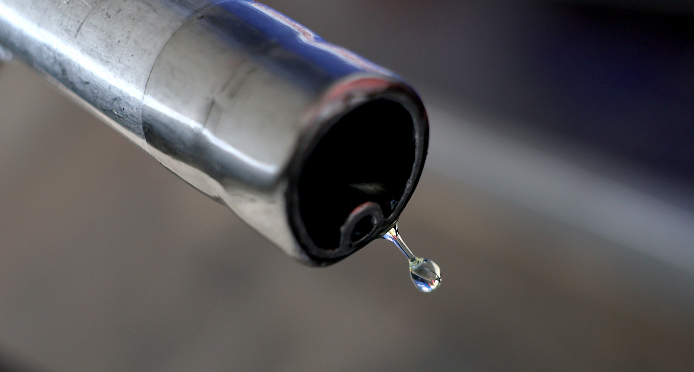 3月26日,在英国伦敦一处加油站,汽油从油枪口滴落。